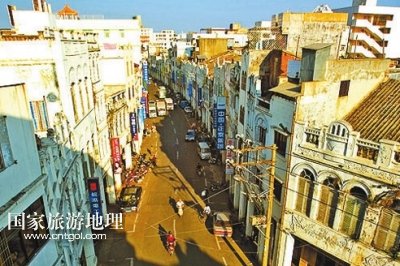 國家旅游地理 海南海口8月24日訊 ??隍T樓歷史文化街區(qū)(簡稱騎樓老街),是海口最具特色的街道景觀。2009年6月10日,首屆“中國歷史文化名街評選推介”活動在北京揭曉,??隍T樓老街榜上有名。??隍T樓老街以其唯一性、獨特性榮獲首批十大“中國歷史文化名街”稱號。從2010年開始,??谑幸褑域T樓老街改造項目。??隍T樓老街已成為了解??诔鞘袣v史的活畫冊。