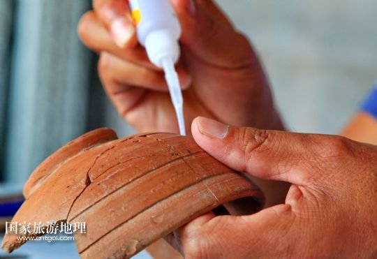 9月20日,考古人員在修復肅寧縣梁村鎮(zhèn)北白寺村附近古村落遺址出土的陶器。