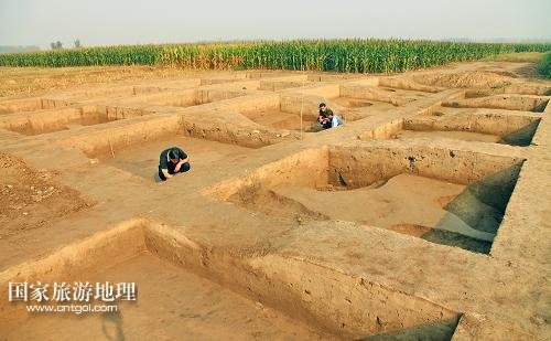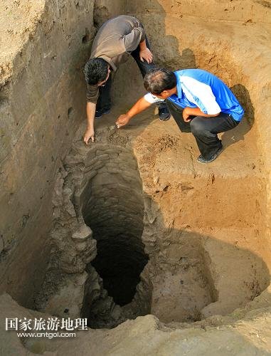 國家旅游地理 河北滄州9月21日訊 9月20日,考古人員在肅寧縣梁村鎮(zhèn)北白寺村附近的古村落遺址發(fā)掘現(xiàn)場工作。近日,南水北調(diào)保滄干渠工程征遷核查期間,在河北省肅寧縣梁村鎮(zhèn)北白寺村發(fā)掘了一處古村落遺址,考古人員進行搶救性發(fā)掘,出土了大批唐宋時期的生活用品、陶瓷碎片及一眼古井。據(jù)介紹,目前考古隊已挖出13個探方,該古村莊遺址的搶救性發(fā)掘工作還將持續(xù)3個月,探方數(shù)量將增加到80多個,面積達2000平方米。該遺址的發(fā)掘,有助于了解當?shù)禺敃r的經(jīng)濟狀況和生活狀態(tài)。 /新華社記者 楊世堯 攝