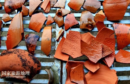 9月20日,記者拍攝的在肅寧縣梁村鎮(zhèn)北白寺村附近的古村落遺址出土的陶片。