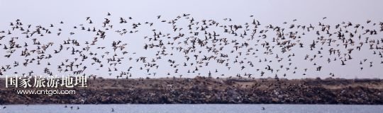 國家旅游地理 遼寧丹東5月2日訊 這是鳥群在空中飛翔(5月1日攝)。日前,遼寧省丹東市鴨綠江口濕地自然保護(hù)區(qū)迎來大批候鳥停留覓食。經(jīng)過中外鳥類專家在鴨綠江口濕地大約40公里范圍內(nèi)7個(gè)分點(diǎn)的同步調(diào)查發(fā)現(xiàn),共36種近14萬只鳥類云集于此,這些候鳥在鴨綠江口濕地經(jīng)過約1個(gè)月的休整、補(bǔ)充體能后,將繼續(xù)北上到俄羅斯西伯利亞和美國的阿拉斯加等地繁育后代。