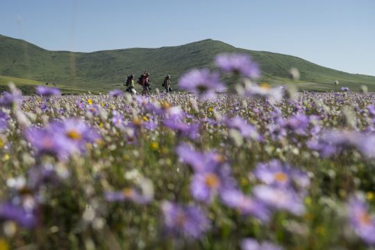 國家旅游地理四川阿壩州6月19日訊 6月19日拍攝的晨曦下的俄木塘草原花海。目前,四川省紅原縣壤口鄉(xiāng)俄木塘草原花海進入鮮花盛開期。俄木塘草原花海位于四川省紅原縣壤口鄉(xiāng)長江黃河分水嶺之山麓,海拔3500米。每年6月到7月,方圓3平方公里的草原上各種顏色的野花盛開,令游客心馳神往,被譽為“最美的草原花海”。 /新華社記者 江宏景攝