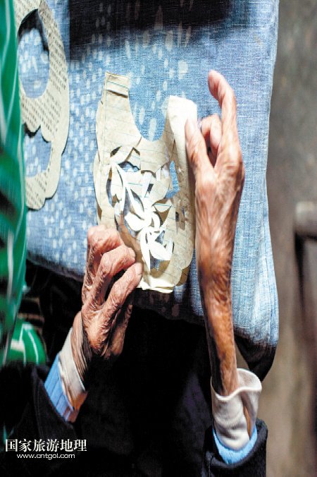 剪紙模、包邊、拼圖、刺繡……在自己出生的老屋里,何娟和奶奶一邊繡拼布繡,一邊拉著家常。青筋畢露的老手,細(xì)滑如胰的新手,一樣的手勢(shì),手藝在潛移默化中傳承。