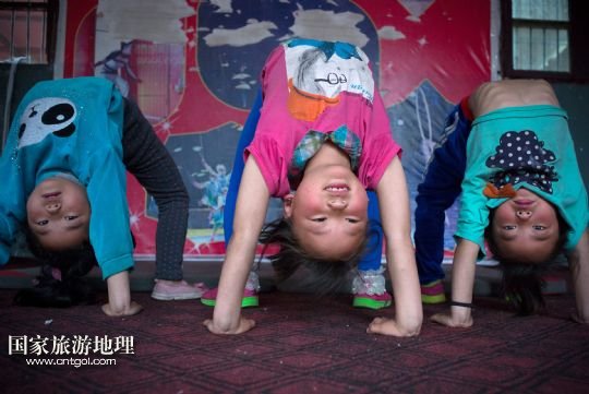 國家旅游地理 安徽阜陽5月31日訊 安徽省潁上縣三王村鄉(xiāng)村雜技學(xué)校成立于2007年。每年都有百余名農(nóng)村孩子來到這里學(xué)習(xí)雜技。