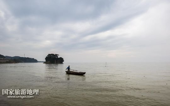 6月15日,一位漁民劃船行進(jìn)在鄱陽湖江西都昌水域。