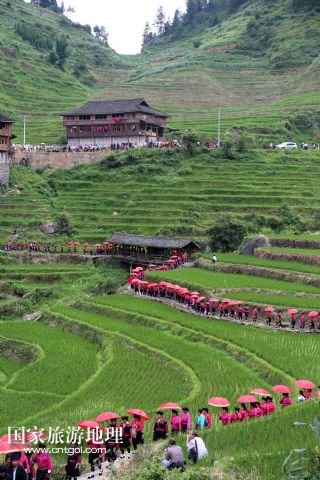 摘要:每年農(nóng)歷五月十四日、十五日是廣西桂林龍勝各族自治縣泗水鄉(xiāng)潘內(nèi)瑤寨紅瑤同胞與親朋好友聚會的日子,亦稱當(dāng)?shù)噩幷摹凹t衣節(jié)”。紅瑤同胞相約在這期間開展唱瑤歌、評寨花、傳統(tǒng)刺繡、打旗公等傳統(tǒng)特色活動。紅瑤是瑤族的一個(gè)支系,因喜穿紅色衣服而得名。